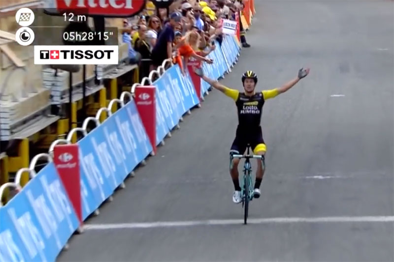 Le Slovène Primož Roglič fait coup double en s’imposant à Laruns sur cette étape des Pyrénées. Particulièrement en jambes et remuant, il a faussé compagnie au peloton maillot jaune dans la descente du col de l’Aubisque pour finalement s’imposer en solitaire. Il devance ainsi Christopher Froome de 18 secondes et le le pousse hors du podium. Romain Bardet termine 3e de l’étape. Retrouvez le film de cette 19e étape ! A revivre en images et dans le conditions du direct avec Francetvsport.